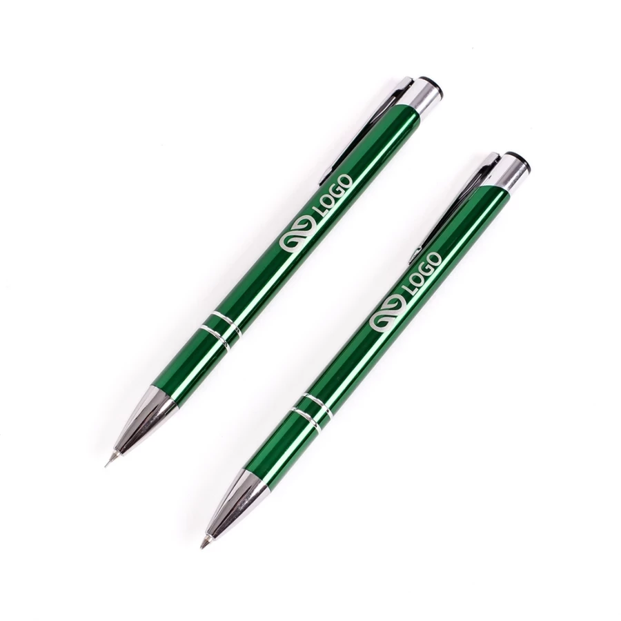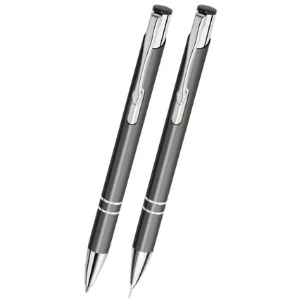 Dvodelni komplet pisala in svinčnika Cosmo je odlična osnova za eleganten pripomoček za oglaševanje. Njegovi elementi so izdelani iz aluminija, njihova barva pa je odvisna od želja posameznega kupca. Pisalo in svinčnik lahko okrasite s poljubnim dizajnom, izdelanim z laserskim graviranjem. To je lahko logotip podjetja, ki bo učinkovit oglas. Ta komplet bo kot darilo med poslovnimi sestanki opravil preizkus. Poleg tega je lahko estetsko prijetno darilo za izjemne zaposlene ter potencialne stranke in naročnike.
